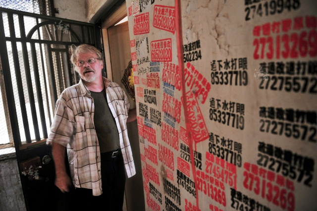 屋外貼滿小廣告,
